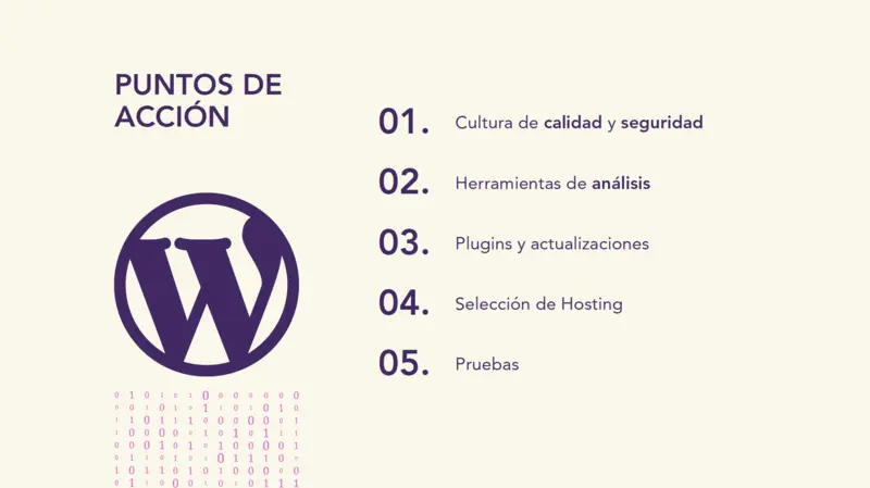 After this analysis, it was time for the “action points” to deliver a secure product, “because cybersecurity is not questionable and you have to work on it ”*, and WordPress is in the spotlight. What are these recommendations?