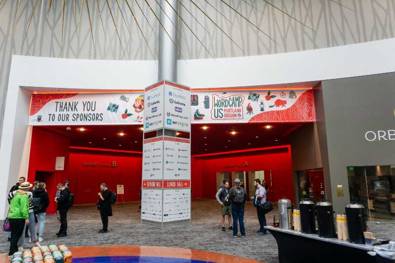 he graphic design accompanying this hype was spectacular and connected so well with Portland. Sam Garner T was the design lead and developed the brand from an exploratory process inspired by Portland’s vibrant atmosphere and the recent renovations to the Oregon Convention Center. The hand-drawn illustrations, logo, colors, and details told attendees about aspects intimately tied to the city in a subtle way that invited you to investigate and take an interest in your surroundings. In this way, I learned that Portland is the city of roses and that the American beaver is the official animal of Oregon. There were plenty of references to the props needed to explore the wonderful topography of the Cascade Mountain Range represented on the Portland Convention Center’s roofs and in the WordCamp’s design. Unfortunately, I wasn’t able to visit this time, but I was able to enjoy the roses.